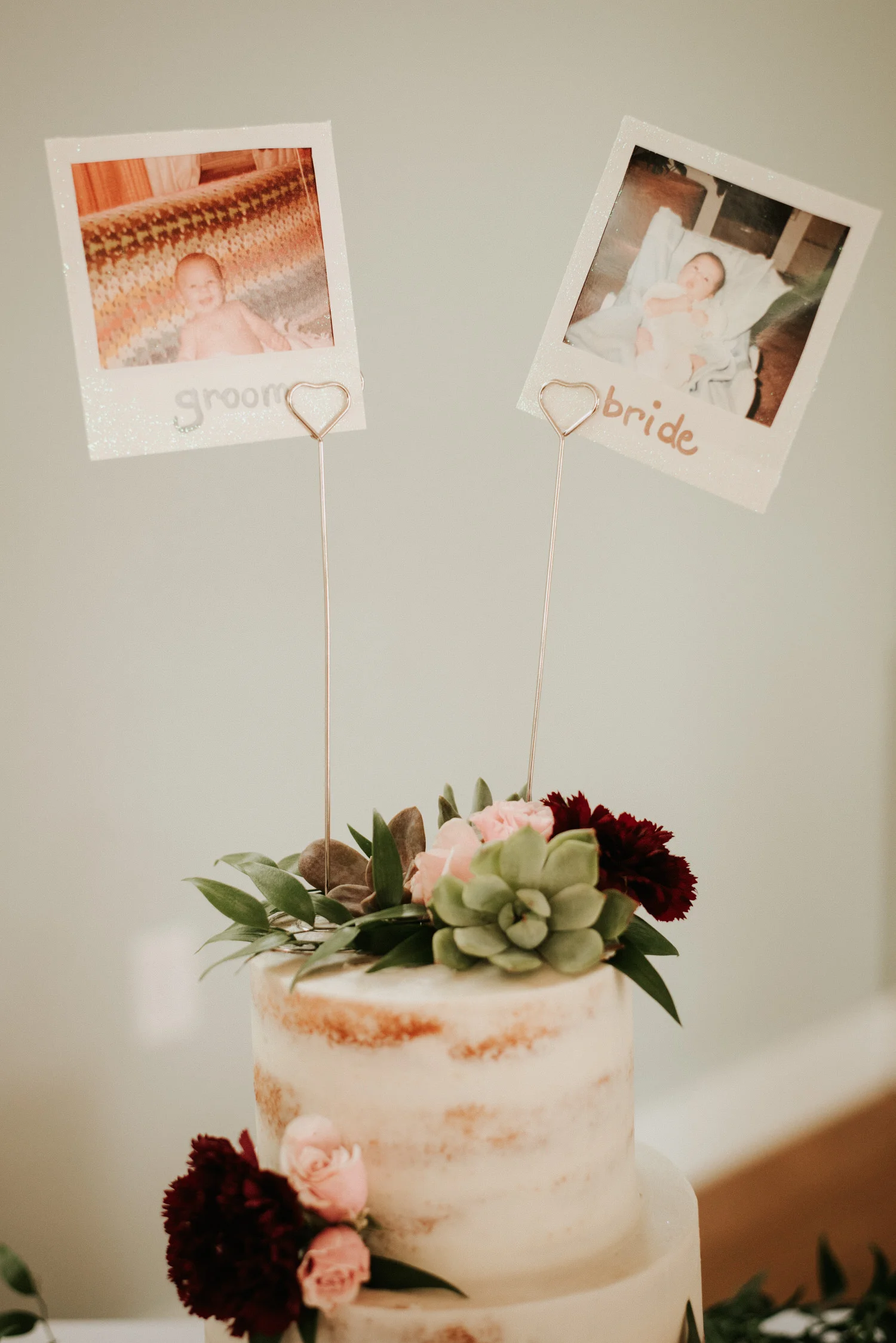 Baby photo polaroids as a cake topper