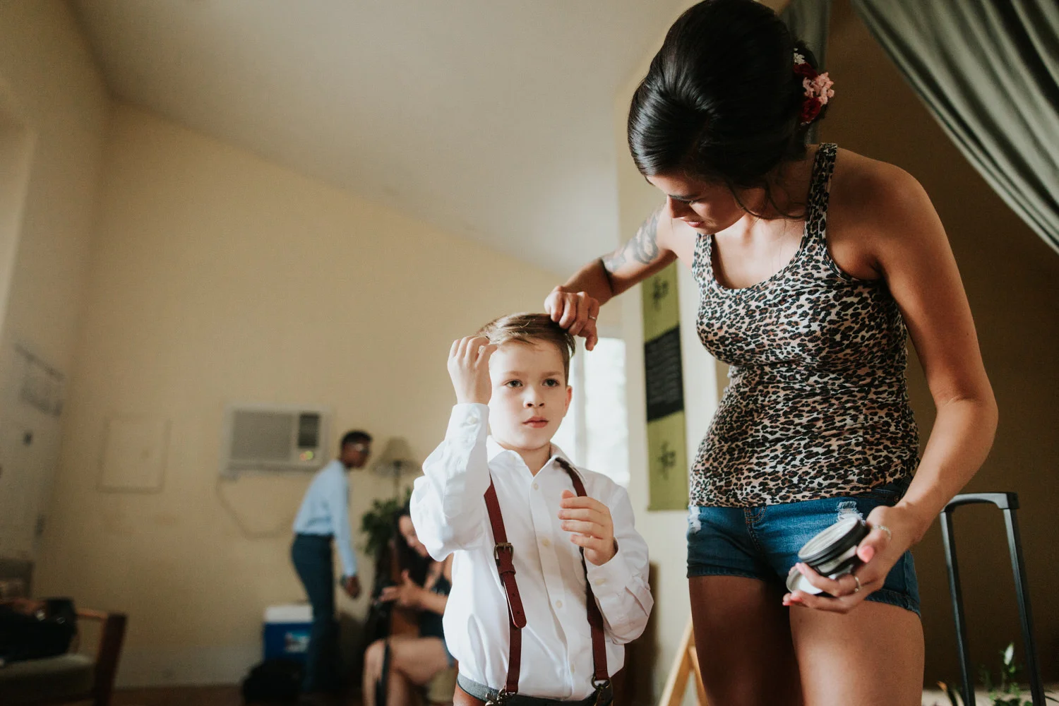 Katie told me she was always conveniently running into him at work and after a few weeks, she asked him out. They had a great time, and the rest is history! Their relationship has been built with so much care on so much respect, love, and honesty— not just for each other, but also for Katie’s six year old son Reznor. They’re a great team and they’re really perfect for each other.