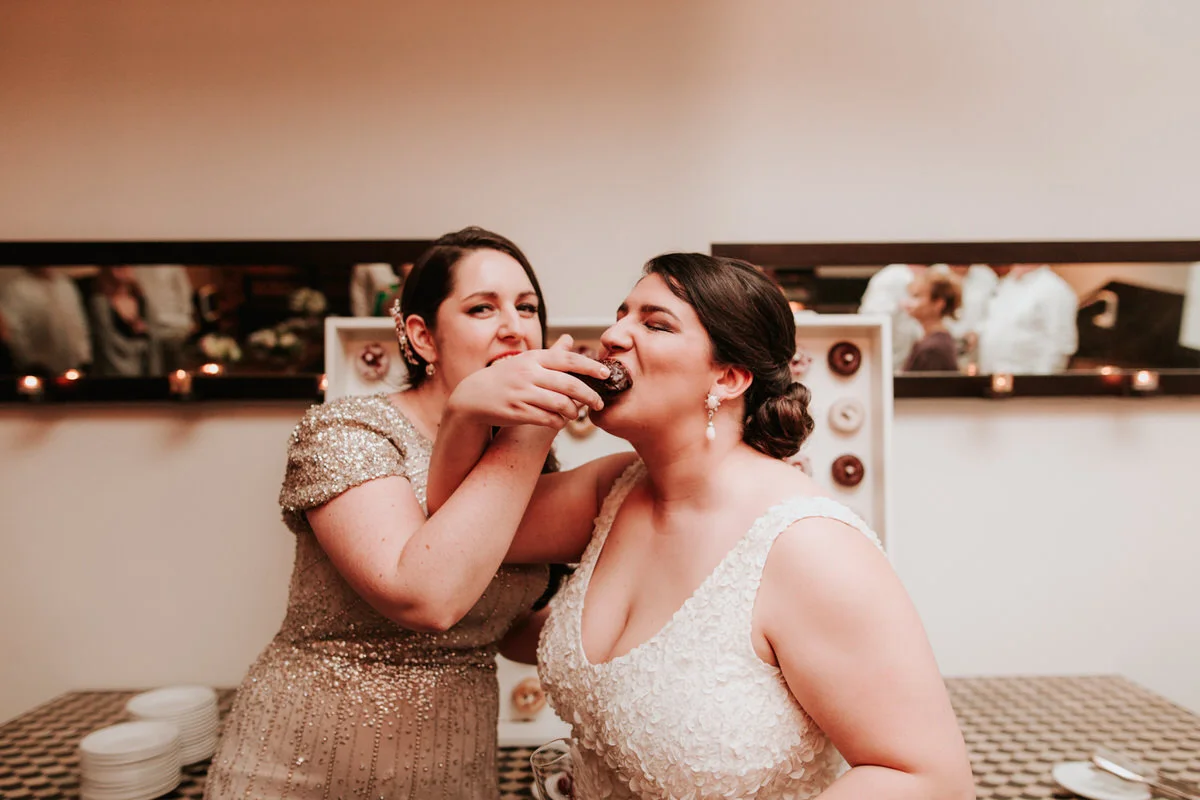 Gaby's family came from Puerto Rico for the wedding and all of the men at the wedding wore these great Guayabera shirts. They had a little wall display of donuts for dessert instead of cake, and followed the Puerto Rican tradition of giving all the women at the wedding a gift of perfume.