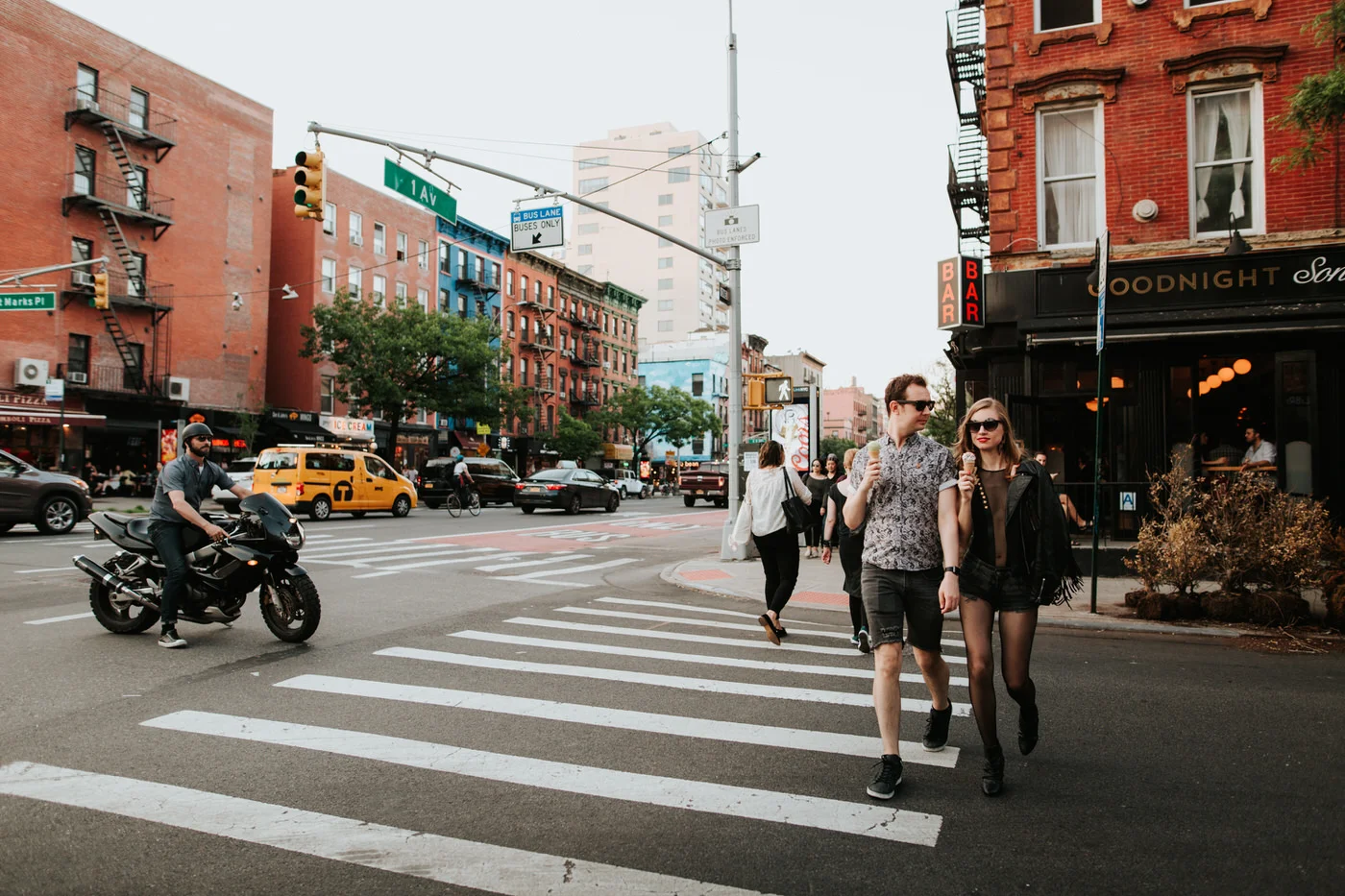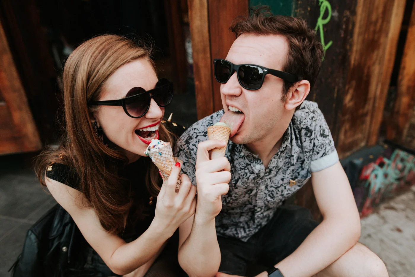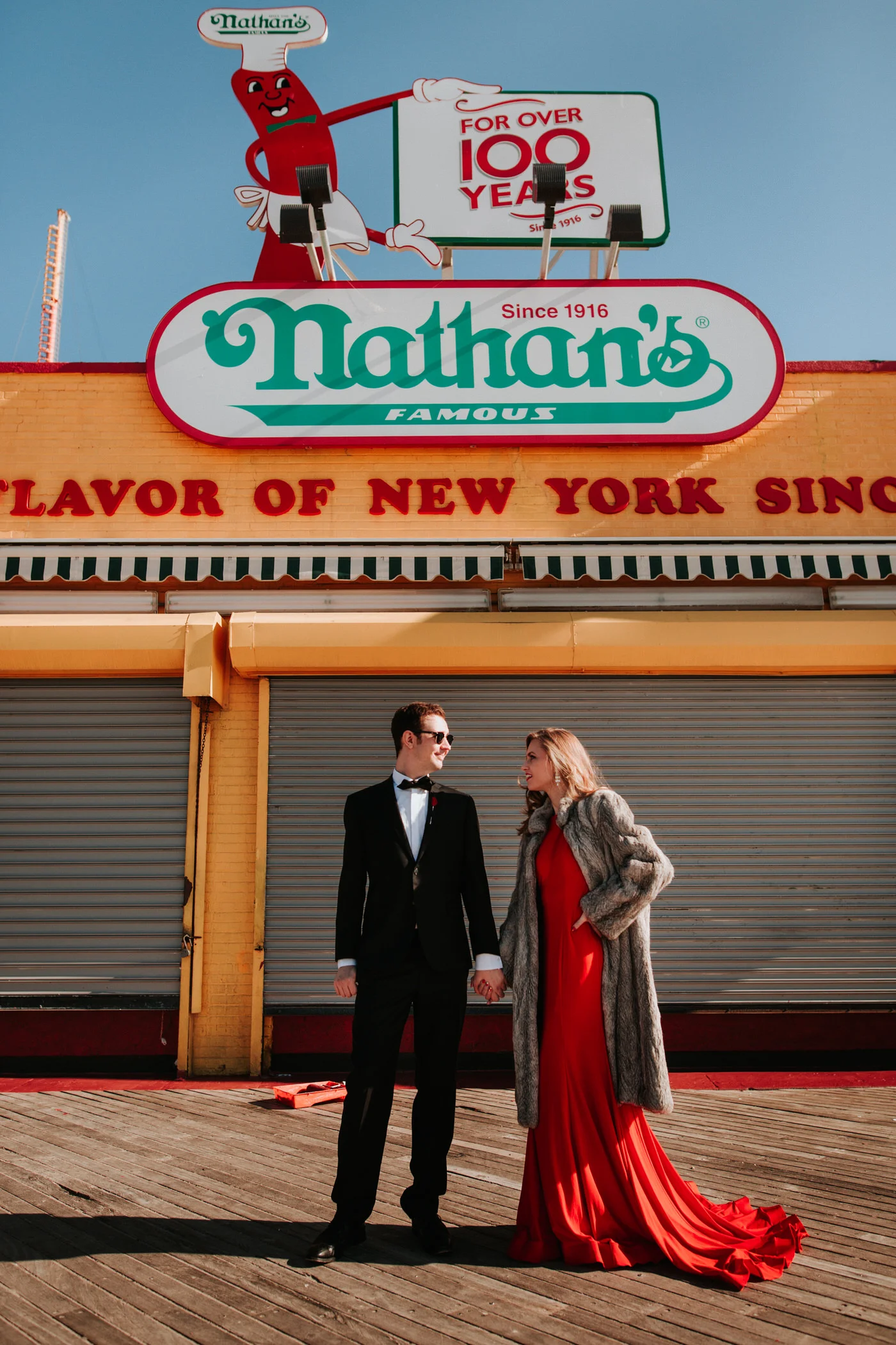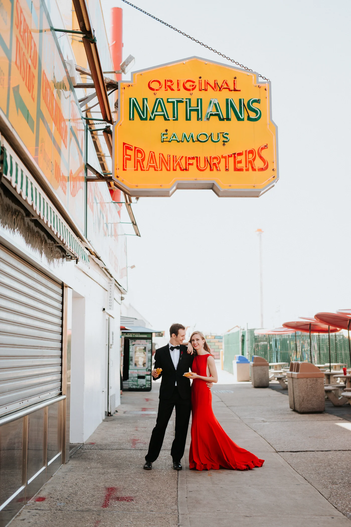 Their engagement session was Wes Anderson inspired. All in all, they looked super chic and turned heads everywhere we went! First, we went to Coney Island and had a hot dog of course. Later in the day, we decided to head to Union Hall and the East Village for ice cream. Laura and Perry are really into food (they are my new favorite food friends) and specifically into ice cream.
