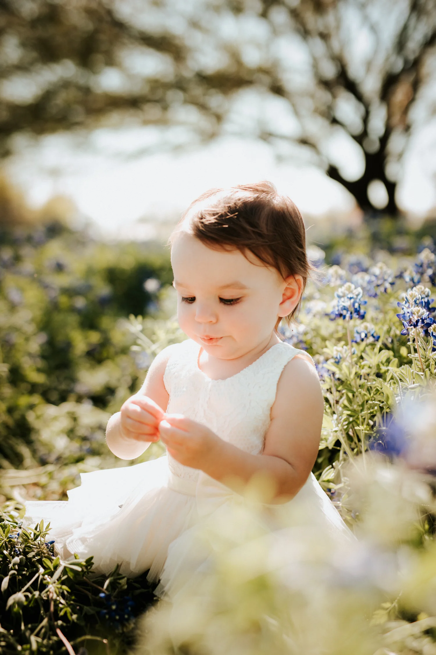 I did Jenn’s maternity shoot at Prospect House last year, and she wanted to work together again to get some shots of Lucy while she’s still one. There’s a huge Texas tradition of getting photos done in blue bonnets. They grow everywhere in the springtime, and they’re the state flower. They’re beautiful and people will stop anywhere for them!