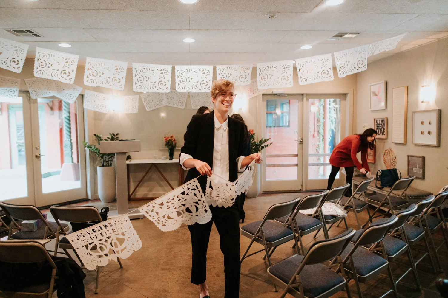 They had the most beautiful non-traditional wedding ceremony at Casa De Luz, a vegan restaurant and event space. Their friends and family were there to help decorate, put up papel picado and celebrate Natalia, Eri and their perfect little perrhija Lara.