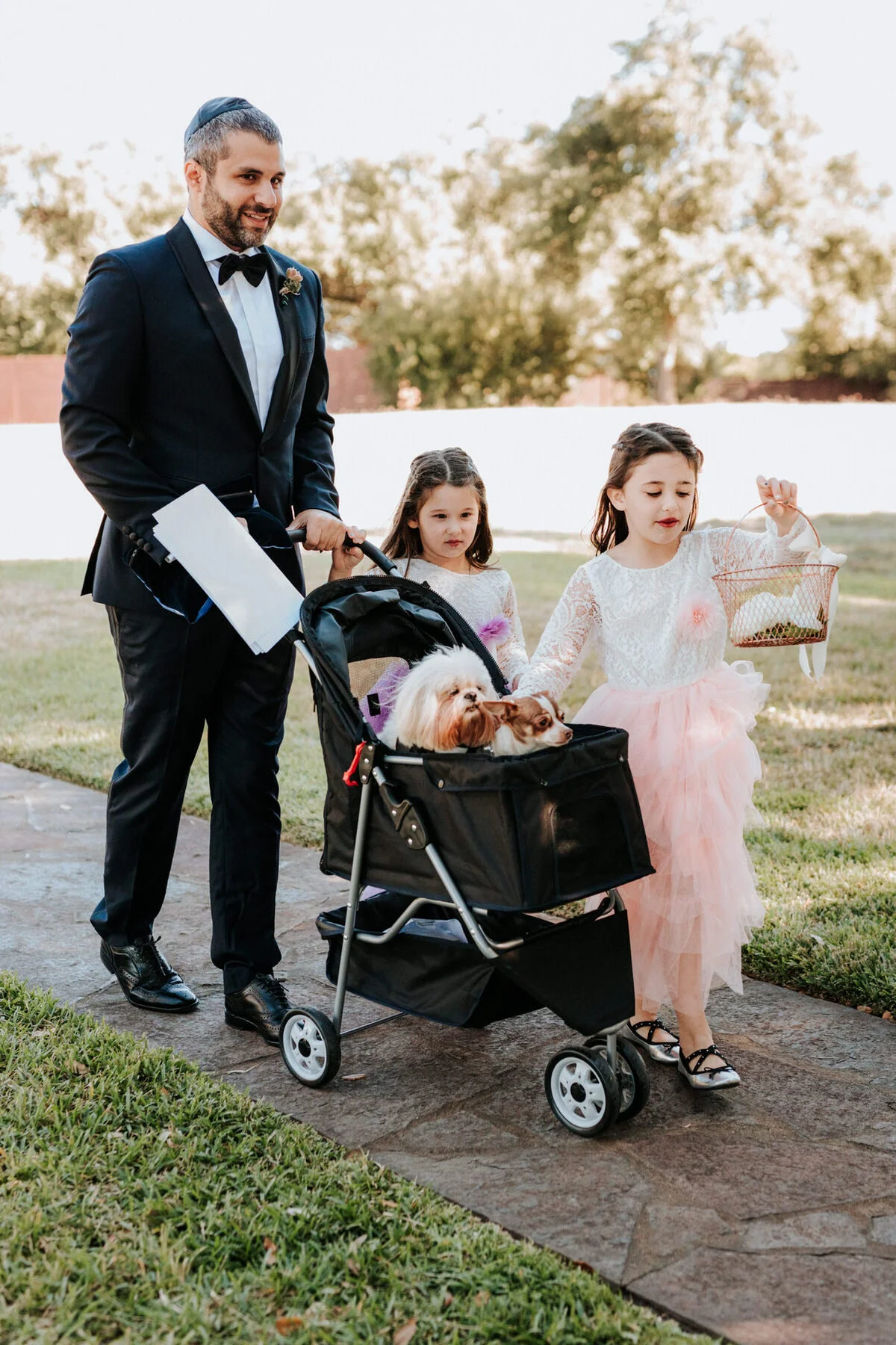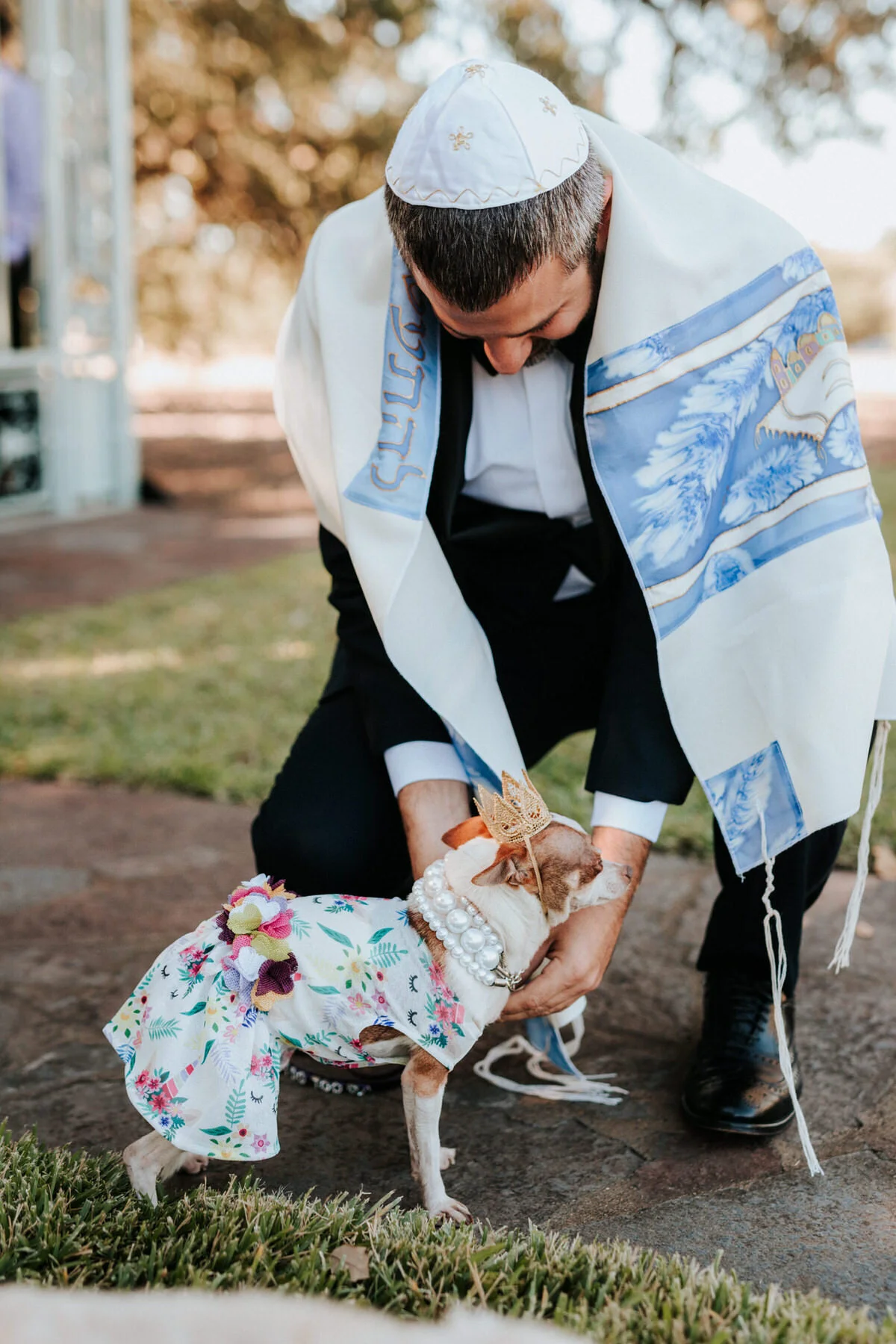 In the photos below you can look forward to dogs, dog crowns, dog jewelry, a dog stroller, and Mandy and Adam's lovely wedding. Scroll down to see them! :D