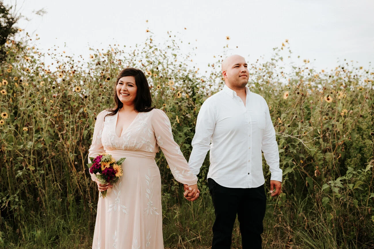 Liz and Vincent met at a friend's surprise party and are both sweet, calm, and thoughtful folks. Liz is a teacher and Vincent is in the military. Their wedding was one that started in one form and then took another. Originally, the plan was to have a wedding in Austin. Due to a change in work plans, plans got moved up and changed around. Instead, they had a small ceremony in Houston and planned to have a bigger wedding later on.