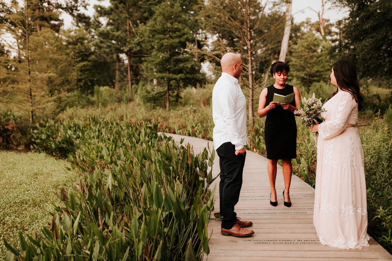 Their dog Zeke was so well behaved and sweet! Afterward, they went out for drinks and a bite with their friends in Houston. Keep scrolling to look through the photos from this tiny wedding at the beautiful Arboretum.